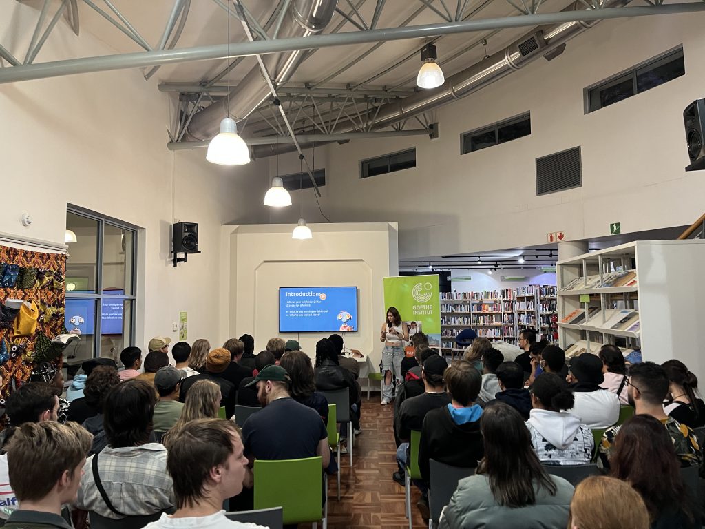 The event fosters asafe and welcoming space for everyone. The meetup began with a look back at trailers showcasing games developed by students of the Goethe-Institut, followed by a 60-second introduction session, where attendees introduced themselves and shared insights into their current projects. This was a great opportunity to network, allowing developers to connect with peers in the industry.