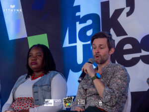 Next up was ‘A Seat at The Table of Change’, hosted by Thobile Chittenden, featuring Samukelisiwe Dube, Tadeo, Masentle Nzimande, Meghna Singh, and Daniel Getachew. This panel delved into how technology, nature, and humanity can coexist harmoniously. Samu introduced a fascinating project exploring sound and soil through binaural soundscapes (experiences where audiences engage with layered natural and digital audio). Tadeo shared plans for the upcoming And Festival, which will bring sound exploration, academic research, and policy discussions right to the doorstep of local communities, proving that the digital culture belongs everywhere.